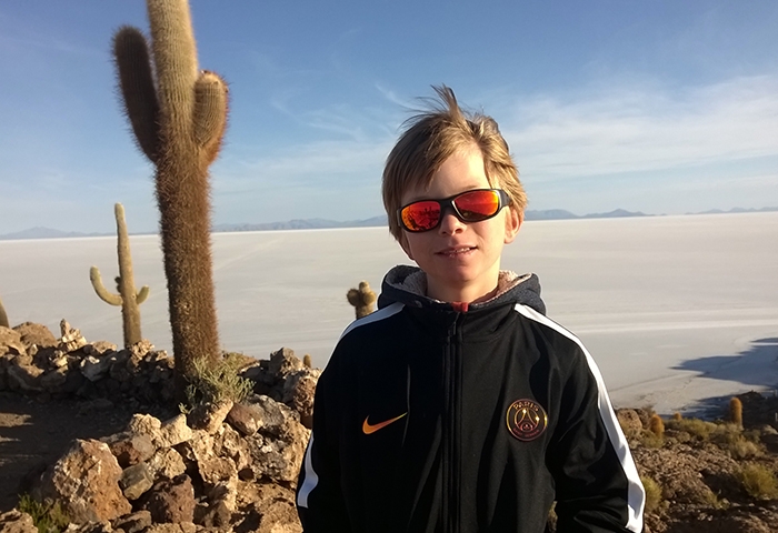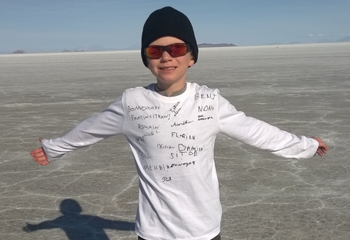 Nous sommes repartis et nous sommes arrivés à l’hôtel de sel. C’est un hôtel construit avec du sel : le lit, le sol, les murs, les tables… Après, ma mère et moi nous avons regardé un film, “Avant le Déluge”, avec Di Caprio qui explique que les hommes polluent la planète et que cela peut la détruire. Nous avons mangé du poulet avec des frites et mes parents sont venus avec mon gâteau d’anniversaire décoré avec le logo du PSG. Comme cadeau j’ai eu : un gilet et un survêtement du PSG, deux places de concert pour aller voir BlackM le 2 décembre 2017 et mon frère m’a offert un porte-clés lama et un lama marionnette.