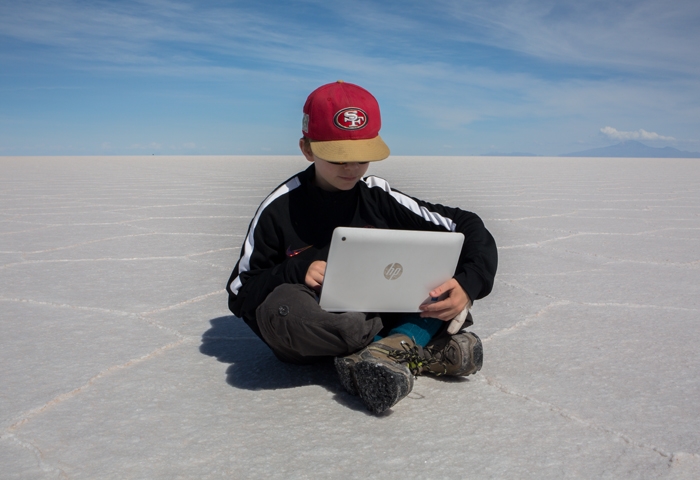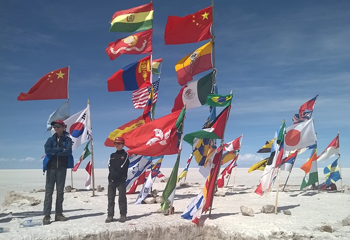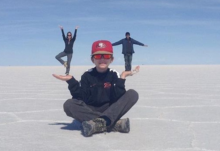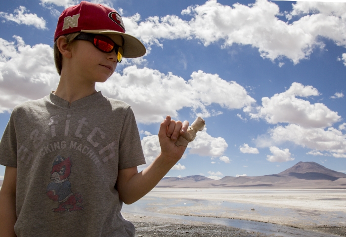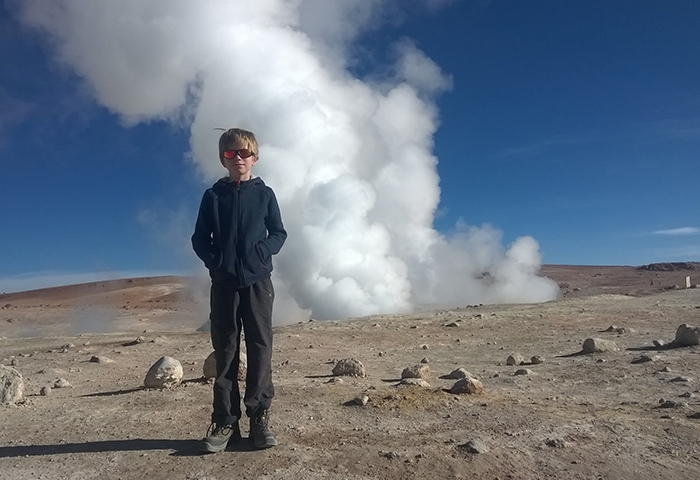 Le soir nous sommes arrivés à notre premier hôtel près d’un lac avec des flamants roses à 5000 mètres dans la montagne désertique. Après le dîner je suis allé à 21h00 me baigner avec maman dans des sources d’eaux chaudes et j’ai regardé les étoiles.