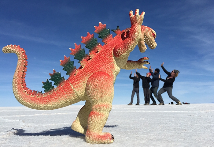 Le lendemain j’ai poussé un énorme ballon dans le Salar… J’ai tenu mes deux parents sur mes mains…. J’ai marché sur la tranche de mon ordinateur… Et Godzilla m’a attaqué !