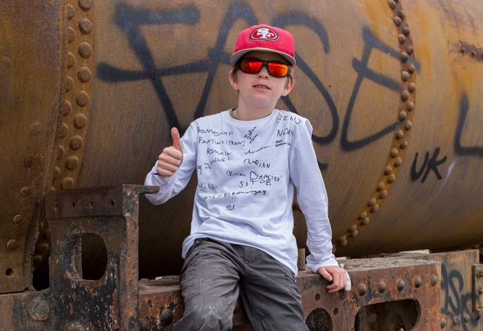 Après nous avons pris la voiture pour aller voir des anciens trains abandonnés à Uyuni.