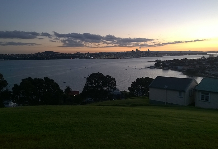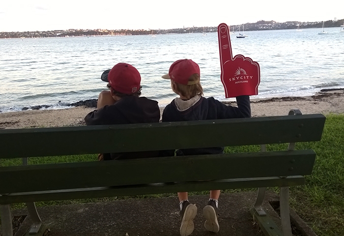 On peut y voir l’élastique de Alan John Hackett , l’inventeur du cordon élastique ou Bungee que l’on peut tester du haut de la tour. C’est un peu l’attraction de la ville, et on n’achètera pas la photo souvenir à 35$ ! Le Fun Park des Masters Games où Fantin nous a traînés sur les quais nous permettra de gagner une deuxième ascension gratuite au coucher du soleil et surtout… 100$ gagnés à la loterie pour aller dîner chez Andy’s Burger ! Ça changera des sandwichs et des makis achetés en promo au supermarché pour ne pas faire exploser le budget. Pas facile de choisir nos visites dans Auckland tellement les prospectus de l’office tourisme sont abondants et la géographie de la ville un peu complexe. Nous nous déciderons pour un aller-retour à Devonport à 12 minutes en ferry, ce qui nous a semblé être un peu le Neuilly de Auckland avec ses superbes maisons, ses gazons impeccables, le mont Victoria et North Head qui offre une vue splendide sur la skyline. Puis Whaikehe, dans le golf de Hauraki, le lendemain d’où on a l’impression d’être déjà loin du centre pourtant à 30 minutes de bateau du terminal de ferry seulement. Une île classée dans le Top 20 des plus îles par Conde Nast Travellers et ses Five Fab Beaches que nous découvrirons en marchant le long du chemin côtier. On se croirait dans le magazine Côté Ouest avec ses maisons toutes plus belles les unes que les autres avec vue imprenable sur le Pacifique, ses petits jardins bien entretenus, une déco de bord de mer simple mais élégante, avec de beaux matériaux, ses ruelles impeccables, ses petits commerces… Sur le bord de la route, des étals de miel à vendre, en libre-service, où il suffit de déposer l’argent de l’achat dans une petite boîte prévue à cet effet. Impensable en France !!! Des fontaines d’eau potable à disposition pour remplir ses bouteilles gratuitement… Des chemins de randonnée bien balisés… La météo est au beau et quelques familles modèles sont sur la plage avec leur body surf… C’est un peu la carte postale du pays parfait où il fait bon vivre…Tellement de choses que nous n’aurons pas vues dans cette ville magnifique et qui j’espère nous accueillera à nouveau un jour.