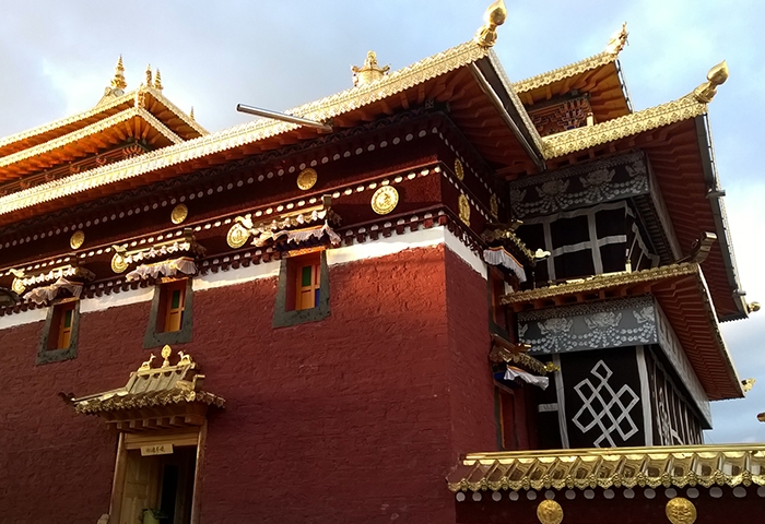 A six heures de route de Jiuzhaigou, le bus nous lâche sur le bord de la voie rapide, à quelques kilomètres de Langmusi où nous nous rendons, ville-frontière entre le Gansu et le Sichuan. Rachel et Teva rencontrés en Nouvelle-Zélande nous avaient recommandé cet endroit qu’ils ont visité il y a plusieurs années. C’est en effet un lieu encore un peu préservé des hordes de touristes même si les cars chinois s’arrêtent désormais ici afin de visiter les temples tibétains de chaque côté de la « rivière du dragon blanc » qui traverse la ville et marque le frontière entre les deux provinces. Mais le charme opère toujours dans ce village niché dans les montagnes et surmonté d’un ensemble rocheux surnommé le « red rock mountain ». Un mini-van attend les passagers déposés sur le bord de la route et nous dépose à l’auberge de jeunesse dans laquelle nous nous attardons une petite semaine. Elle est à quelques pas de Kerti Gompa, côté Sichuan, un temple dont la construction remonte à 1413 et un monastère qui abrite encore aujourd’hui 700 moines, dont de très jeunes. C’est d’ailleurs ce qui donne une âme à cette petite bourgade : ces moines que l’on croise partout dans les ruelles… Très étonnant de voir les moinillons jouer comme tous les enfants avec des armes en plastique ou se régaler de bonbons… Dommage qu’ils n’acceptent pas qu’on les prenne en photo !