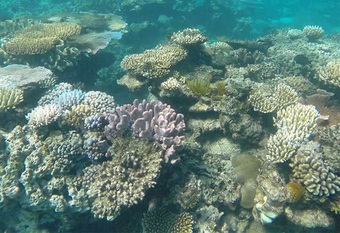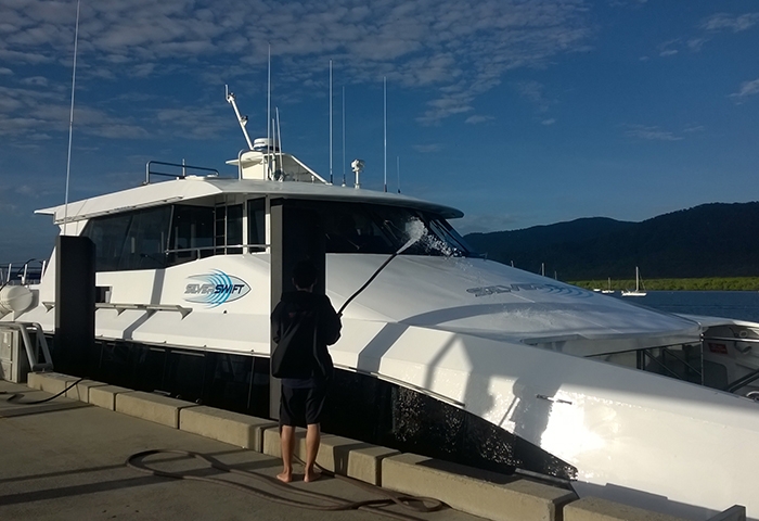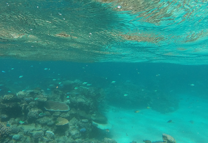 Nous embarquons le lendemain de notre arrivée sur un gros catamaran rapide de 29 mètres équipé pour la plongée, le Silverswift, qui permet de découvrir 3 sites différents dans la même journée. L’aller est assez houleux, nous avons un peu de mal à supporter les 32 nœuds par ce temps et le briefing ultra-complet du dive-master est assez difficile à suivre avant que le bateau ne soit à l’arrêt. Ici la plongée bouteille est extrêmement encadrée, il n’y a pas de compromis avec la sécurité et on ne lésine pas sur le personnel encadrant. Il peut manquer un peu de convivialité dans ce process ultra-rôdé mais nous ne sommes pas déçus par le spectacle qui nous attend sous l’eau. Les coraux sont vraiment magnifiques et nous avons pu nager avec des tortues. C’est vraiment « Le monde de Némo » !!! Fantin ne pourra pas réitérer son baptême car la plongée bouteille est interdite aux moins de 12 ans dans ce pays mais il aura droit à un tout aussi beau paysage sous-marin en snorkling et s’amusera en plus avec Artair à suivre les bulles des plongeurs dans le courant.