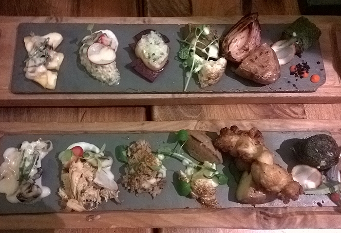 Bref, vous l’aurez compris, Santiago fut davantage un lieu de rencontres et les visites culturelles ont été limitées à la Place des Armes, le Cerro San Cristobal, les pourtours du marché central et le Barrio Bellavista. Sans oublier un voyage culinaire chilien « du nord au sud » grâce à nos hôtes au restaurant Peumayen, accompagné d’un excellent Bottero Anonimo (cépages Carménère et Cabernet Sauvignon)… Un régal ! Merci les amis….