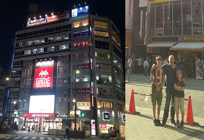L’ordre et la discipline des japonais sont bien connus mais en tant que français, cela surprend toujours de voir ces files d’attente bien alignées dans les transports, les commerces ou les administrations. On s’est parfois fait rappeler à l’ordre lorsque nous nous engagions un peu trop sur la chaussée pour traverser avant que le feu ne passe au vert ! Traverser au rouge peut même être verbalisé ! Tout comme fumer dans les rues… On s’est de temps en temps cachés comme des adolescents pour fumer quand nous ne trouvions pas d’espace consacré et que les messages au micro dans les rues rappelaient les sanctions en cas de d’infraction. La philosophie du « Ganbatte » (faire de son mieux) est appliquée à toutes les activités et même le rangement des rayons dans les supermarchés est un vrai plaisir pour les yeux ! Rien ne dépasse, c’est nickel ! Tout comme l’empilement des articles dans votre panier en sortie de caisse ou l’emballage papier des achats dans les boutiques. Les japonais démontrent une telle application dans tout ce qu’ils entreprennent dans la vie courante que cela devient parfois exacerbant ! A côté de cela, on sent du « pétage de plombs » ou comme un besoin évident d’enfreindre les règles que ce soit en voyant toutes les générations, homme et femmes, se défouler dans les salles d’arcade (fumeurs !) sur des jeux complétement dingues ou en observant les accessoires kawai que tous portent comme un twist à leur costume de « salary man », sans parler des bars à thème qu’ils fréquentent servis par des barmaids aux costumes cosplay dans le quartier électrique de Akihabara, ou des karaokés, temples du lâcher prise…. A Ikabukuro, au Sunshine City mall où se trouve le Pokemon Center (passage obligé pour Fantin !), on a vu une foule en délire assister à des battles de jeux, avec chants, cris et bâtons lumineux pour supporter leurs favoris ! Au Robot Bar à Shinjuku, ce sont des chars et des danseurs plus kitchs les uns que les autres qui font le show. A Shibuya, des salles de jeux virtuels avec casques 3D avec ses expériences immersives inédites feraient pâlir de ridicule « La tête dans les nuages » parisienne.