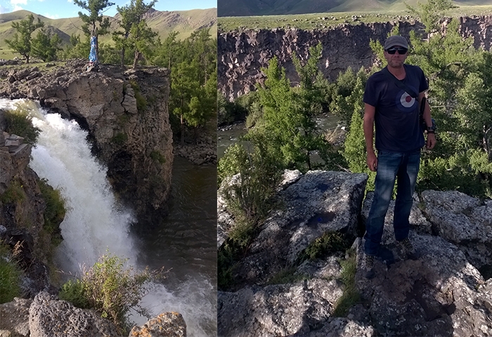 La route de la journée pour parvenir au parc national de la vallée d’Orkhon, véritable berceau du peuple mongol, classée à l’UNESCO, sera pénible aussi car le mal de tête et la nausée peu compatibles avec les pistes cabossées. Il nous faut la journée pour nous en remettre, une petite balade à la grande cascade de la réserve, une soupe et au lit ! Dans cette région boisée notre camp est au bord de la rivière tout proche de la forêt. La famille élève chevaux, yaks, chèvres et moutons. L’hiver le père est chasseur et traque le loup aussi, il y en a plus de 4 millions dans le pays à l’affût des 70 millions de têtes de bétail. Plusieurs vans de voyageurs font escale ici. La région est splendide avec ses immenses étendues d’herbe parsemées de pierres issues d’anciennes irruptions volcaniques et ses parterres d’edelweiss. Nous allons cueillir les cassis dans la forêt voisine accompagnés de Moogii et 3 enfants nomades pour faire le délice de notre goûter avec un peu de sucre avant la préparation des Khuuahuur (fried big dumpling) pour le dîner.