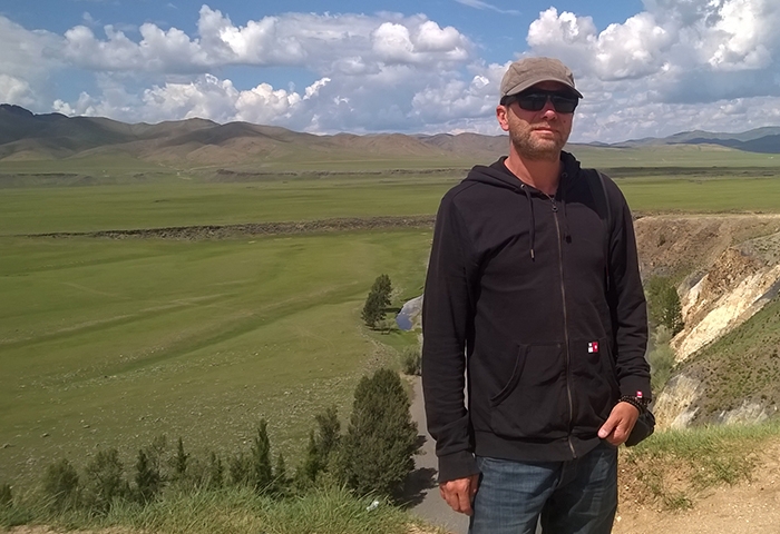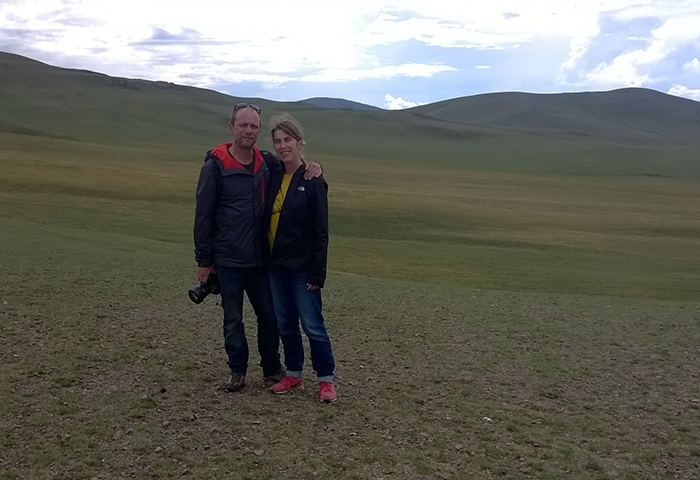 Ce dernier pays de notre tour du monde est une étape singulière car nous y voyagerons accompagnés d’un chauffeur et d’une interprète. En effet, c’est très compliqué pour des voyageurs en sac à dos de se déplacer sans voiture car les lignes de bus sont peu nombreuses et il est très difficile d’y conduire : quasiment pas de routes goudronnées ou en très mauvais état, signalisation routière rarissime et en caractères cyrilliques, pistes désertiques et souvent méconnaissables…. Afin d’aller à la rencontre des familles nomades sur ce territoire de 1 500 000 km² (plus grand que le Royaume-Uni, la France, l’Allemagne et l’Italie réunis !!!), c’est Puujee qui prendra le volant de notre van 4×4 (avec le volant à droite tout en roulant à droite… une bizarrerie non corrigée de l’import japonais ici ! ). Les chauffeurs ne parlent pas anglais, comme la plupart des mongoles d’ailleurs, et c’est Moogii, une professeur de russe à l’université de Oulan-Bator, qui sera notre interprète tout au long de ce voyage dans ce pays.