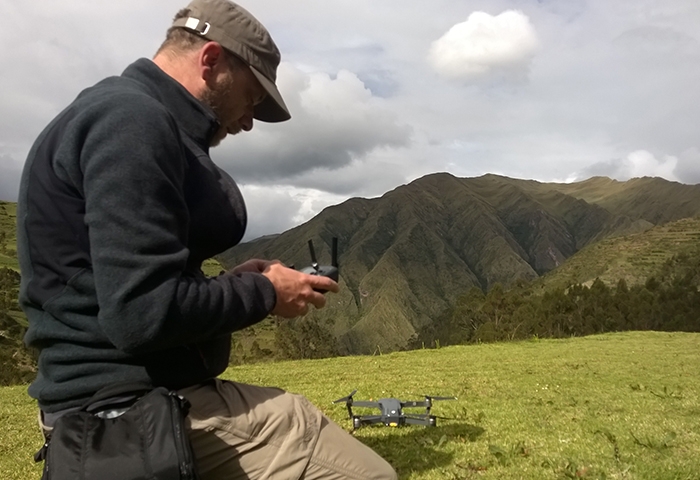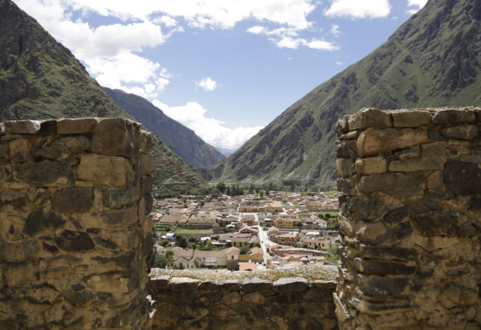 Nous visitons Ollantaytambo sur le chemin retour du Machu Picchu, après notre épisode Jaquouille la Douille dans l’hôtel***, et avoir finalement trouvé un toit dans un établissement beaucoup plus modeste. Ce village est le seul au Pérou qui ait conservé le plan de la ville inca intact, et le système d’évacuation des eaux d’origine démontre encore une fois que les conquistadores avaient beaucoup à apprendre du génie de l’urbanisme de cette civilisation ! Apéro en terrasse dans l’une des demeures coloniales qui entourent la place centrale, et brochettes de poulet achetées à une marchande ambulante font notre soirée. Le lendemain, nous retrouvons la chaleur et le soleil pour explorer les ruines de la forteresse et grimper l’escalier très raide qui mène au site pour y faire voler le joujou d’Arnaud !