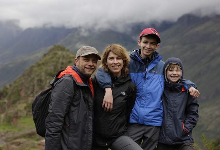 Pisac est accessible en minibus (20soles/pax) à moins d’une heure de route super belle dans la montagne. Avant d’accéder aux ruines plus haut que le village et accessibles en taxi seulement (25 soles), nous nous arrêtons au marché haut en couleurs, à la fois artisanal et alimentaire. Une fois encore la pluie nous surprend mais plus tôt que d’habitude, alors on en profite pour déambuler sur le marché, faire quelques achats et goûter quelques plats. Une éclaircie l’après-midi nous permet de visiter les ruines sans trop de monde (c’est au moins l’intérêt de la saison des pluies !) et d’admirer le panorama sur la vallée. Nous y rencontrons une autre famille française de voyageurs au long cours, « lessixauxameriques » partis depuis 5 mois, pour une traversée du continent américain et qui nous impressionnent par leur mode de voyage en autonomie à 6 dans leur véhicule Land Rover aménagé. Ça fait du bien de croiser des semblables… leur « coolitude » renforce notre envie de poursuivre la route !