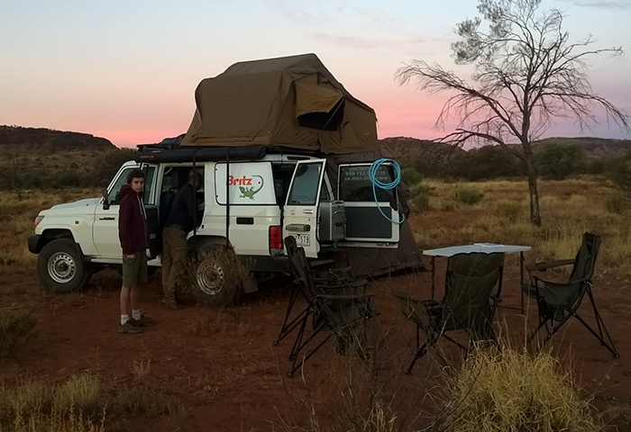 Location de 4×4 Britz : 1000$/5 jours (minimum) incluant table et chaises en option, couchage et draps, assurance et plein d’essence