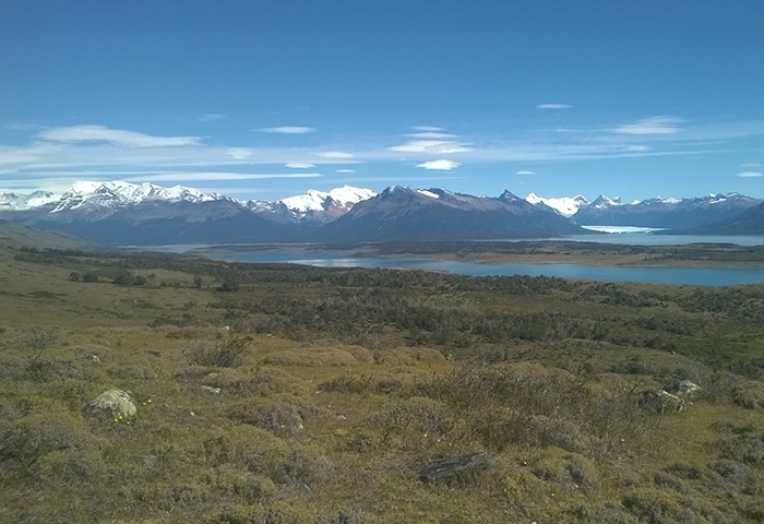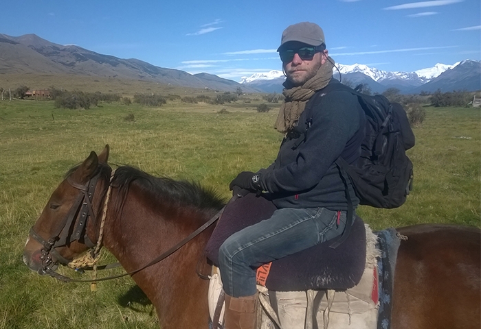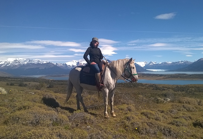 Nous ne pouvions pas non plus quitter la Patagonie sans une randonnée équestre au milieu de la pampa, c’est un peu l’image d’Epinal que nous avions en tête en arrivant ici. On s’est donc offert le petit plaisir d’une journée de sortie en compagnie de Luciano (on a pas trouvé Florent Pagny !), à l’écart des chemins touristiques. Une fois de plus, nous avons réussi à faire combiner l’alternance météo avec celle de notre programme, et c’est encore par temps magnifique que nous avons chevauché à partir de son estancia, Lago Roca, à 42 km de la ville, et profité d’une vue panoramique sur un paysage unique depuis le Glacier Perito Moreno jusqu’au Rio Rico.