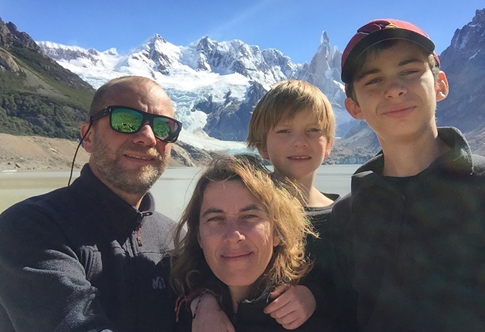 Arrivés à El Calafate, nous sommes à près de 6000 km de La Quinca, la ville frontalière de la Bolivie au nord qui nous a accueillis la première en Argentine, et à près de 14 000 km de Paris… Loin, nous sommes très loin ! On nous avait prévenus : plus grande que la France avec moins d’un habitant au kilomètre carré, la Patagonie impressionne par son immensité… C’est vrai ! Débarqués en short en venant par avion directement de Buenos Aires où la température frôlait les 40°, on a eu vite fait de ressortir les polaires des sacs, même si c’est encore l’été, que les fruits sont mûrs dans les vergers et la lavande en fleurs. Ici la météo varie d’une heure à l’autre et il faut apprendre la patience pour organiser ses activités le temps d’une éclaircie. Cher… c’est aussi un adjectif communément associé à cet état de Santa Cruz pourtant largement et inéquitablement subventionné par le gouvernement au regard de sa densité de population depuis l’ère Kirchner (dont Nestor, puis Cristina, son épouse, tous deux successivement présidents du pays étaient originaires). Nous élierons donc le gîte au plus économique mais tout compte fait dans un petit hostal tout simple avec des matelas bien confortables ! C’est un critère qui commence à devenir important pour nous quatre après plus de deux mois de voyage. Doté d’une grande cuisine, il nous permet en plus de cuisiner et d’éviter les restaurants dont on commence aussi parfois à se lasser (eh oui ! une bonne gamelle de pâtes maison ou une soirée crêpes et pain perdu, ça donne le sourire aux petits Farré !).