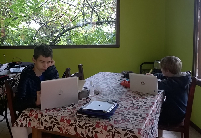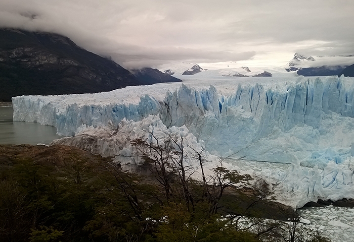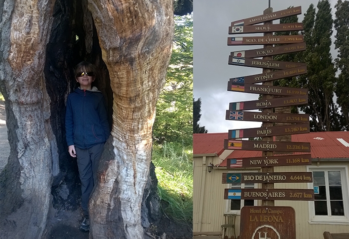 Pas de chance : le vol de drones est interdit dans la zone, c’était bien tentant pourtant ! Site classé au patrimoine mondial de l’Unesco, il est aménagé avec des passerelles qui permettent de l’observer de plus ou moins haut, d’entendre ses craquements et assister à la rupture de morceaux qui formeront des icebergs plus ou moins gros. Ce glacier est l’un des seuls qui n’est pas en recul… Il avance même de 2 mètres par jour jusqu’à la péninsule de Magellan jusqu’à parfois l’atteindre et créer un barrage naturel dans le lac. Une journée bien sympa à observer ce spectacle dont on ne se lasse pas et pique-niquer dans un environnement protégé si pur que les arbres « barbus » sur leurs troncs en sont la preuve parait-il ! Le ciel n’est pas bleu comme sur les cartes postales mais on est contents de profiter de cette journée d’accalmie pour contempler cette merveille. Ce ne sera pas le cas des deux jours suivants durant lesquels les kids alterneront entre usage de leur lit confortable et classe dans la cuisine, une petite séance de géographie en voyage en sus avec la visite du chouette musée Glaciarium.