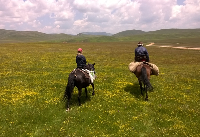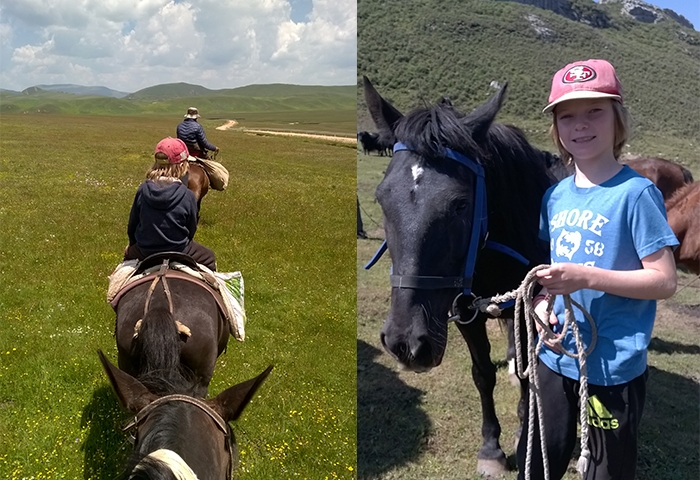 Ensuite nous avons pris un bus pour aller à Songpan, on a mis 6h pour y aller. Un matin on est allés tout en haut de la montagne et tous les soirs on est allés sur une place pour danser et jouer au basket avec un ami que je m’étais fait, il s’appelle Max. Ensuite on a repris un bus pour aller à Jiuzhaigou pour visiter des rivières bleu fluorescentes. Puis on est allés à Langmusi où on a fait un trek de 2 jours à cheval. On a vu des Nomades qui traient les yaks et je les ai aidés à attacher les veaux.