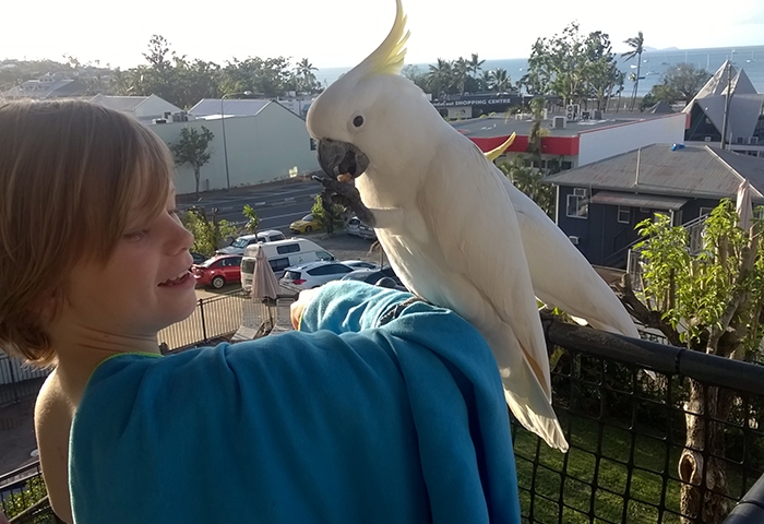 Puis on a continué en voiture jusqu’ à Cairns où ma Tata éloigné habite et on est allés dormir cinq nuits chez elle. Elle a 3 enfants : un qui a 8 ans, un autre qui a 3 ans et un autre qui a 1 an, et ils ont 2 chats, 2 chiens, et des poissons rouge.