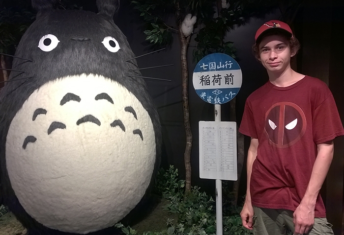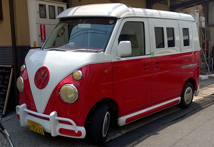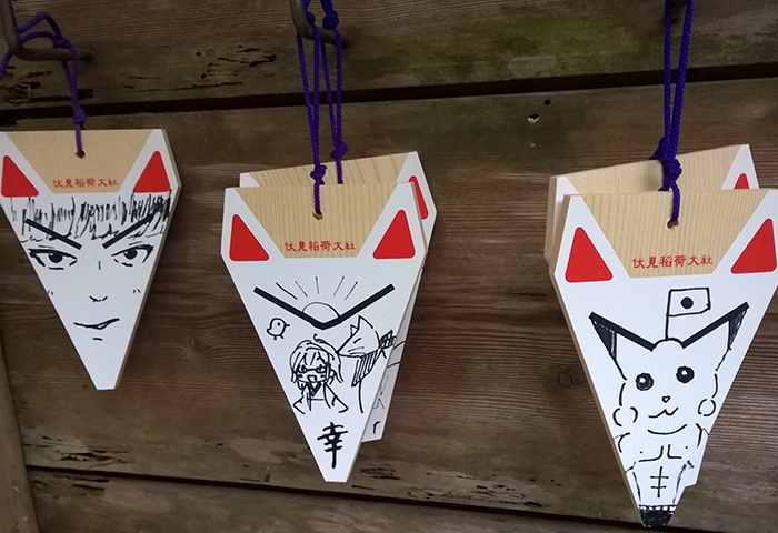 Plus loin, en passant la rivière Kamo qui traverse la ville, dans la rue Pontocho, les restaurants étalent leurs terrasses sur les berges et ce sera pour nous le terme d’une première journée de marche intense et l’heure d’un apéro bien mérité dans la douceur de la brise nocturne estivale. Autre journée, autre visite… cette fois à l’écart de la ville, au sud de Kyoto à Inari, le sanctuaire Fushimi est sans doute l’un des plus beaux que nous ayons fait. Une randonnée pédestre de plus de deux heures le long d’une vallée, balisée par des milliers de portiques vermillon appelés torii. On apprendra plus tard que ces 10000 portiques sont en fait une sorte de publicité, financés par des hommes d’affaires et des sociétés qui les payent cher et les signent. Peu importe, quand on ne lit pas le japonais, l’esthétisme est bien là et les points de vue très photogéniques ! Kyoto est aussi une ville idéale pour se perdre à vélo. Nous avons pédalé toute une autre journée jusqu’à la bambouseraie au nord-ouest de la ville, puis au Kinkaku-ji au nord, temple boudhiste inscrit au Patrimoine de l’Unesco bien qu’ayant brûlé plusieurs fois et toujours reconstruit à l’identique. Le très beau roman de de Yukio Mishima relate d’ailleurs la dernière destruction de 1950 et l’obsession de son personnage principal pour la beauté du pavillon. Il est surnommé le Pavillon d’Or pour ces magnifiques façades recouvertes à la feuille d’or et il est extrêmement fréquenté par les visiteurs.  Son côté bling-bling n’est d’ailleurs pas très raccord avec le style zen japonais ni les hordes de touristes qui gâchent un peu sa visite.